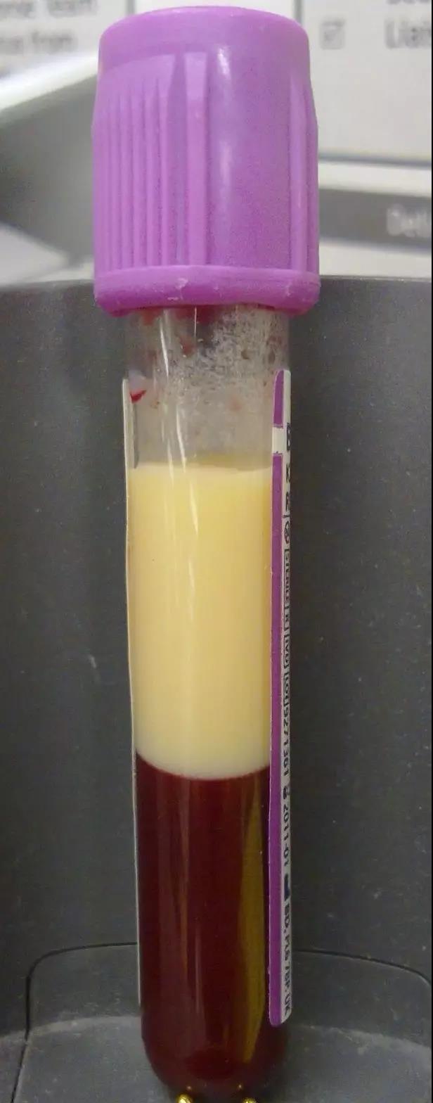常有人將血脂與甘油三酯視為一體,實(shí)際上,甘油三酯(TG)僅是血脂的一種,血脂還包括其他物質(zhì)如膽固醇等。當(dāng)病人的血甘油三酯特別高(顆粒大、密度低的脂蛋白過(guò)多)時(shí),血液會(huì)呈乳白色,將這種血靜置一段時(shí)間后,血的表面會(huì)形成厚厚的一層奶油樣物質(zhì),這便是化驗(yàn)單上報(bào)告的所謂的“甘油三酯”。