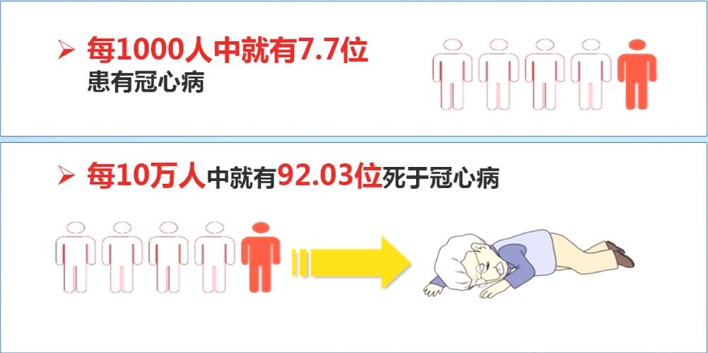 冠心病是當(dāng)今世界上導(dǎo)致死亡的主要病癥之一。由于臨床表現(xiàn)復(fù)雜,病情變化突然,常常使人聽(tīng)而生畏。 正確認(rèn)識(shí)冠心病,堅(jiān)持科學(xué)的生活方式,及時(shí)發(fā)現(xiàn)、認(rèn)真治療是非常重要的。 目前,我國(guó)心血管疾病病人有2.9億,其中心肌梗死病人有250萬(wàn)。
